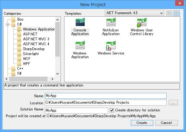 開発ツールとして推薦しておいた「SharpDevelop」を使ってもコンソールプログラムは作ることができます。これについても簡単に説明をしておきましょう。