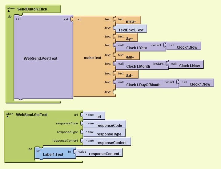 ※下図は、ブロックエディタのSendButton.ClickとWebSend.GotText