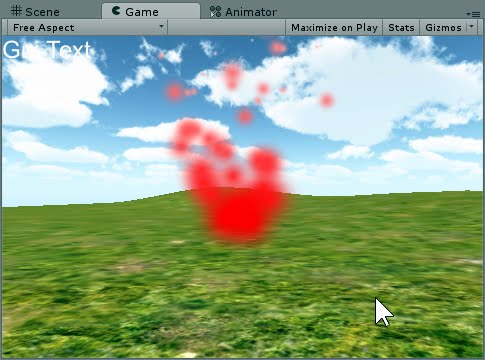 これは、マウスボタンでパーティクルシステムの実行を行う簡単な例です。左ボタンを押し下げるとパーティクルシステムがスタートし、パーティクルが放出されます。ボタンを離すと放出が止まります。