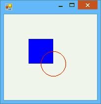 以下に簡単なサンプルを挙げておきましょう。Form継承クラスとして用意してあるので、これを別途実行して表示してください(前回の記事を参照のこと)。四角形と円を表示したウインドウを作成します。