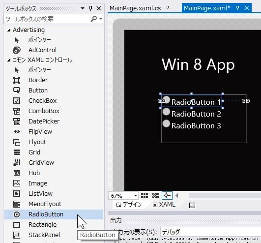 複数の項目から1つを選ぶといえば、「ラジオボタン」でしょう。Visual Studioでは、ツールボックスのコモンXAMLコントロールに「RadioButton」という名前で用意されています。
