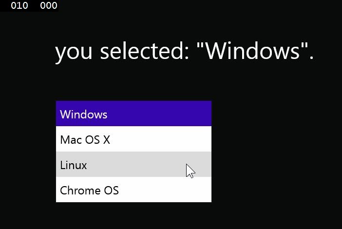 実際にやってみましょう。デザイン画面で配置したComboBox(ここではcombo1という名前で設定してあります)を選択し、プロパティから「selectionChanged」イベントを探して、そこに「Combo1_Changed」と設定をしてください。そしてMainPage.Xaml.csに生成されたメソッドを下のリストのように書き換えましょう。これは、選択した項目を画面のTextBlock(textblock1という名前にしてあります)に表示するサンプルです。