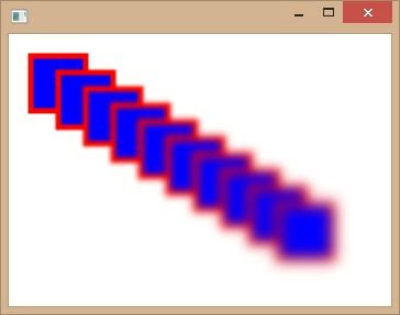 では、簡単な利用例を挙げておきましょう。下を実行すると、少しずつガウシアンブロワでぼかしを強めながら四角形を描いていきます。