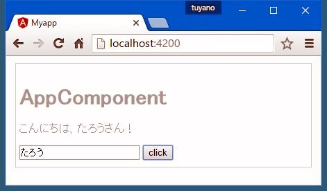 これで、コンポーネントは完成しました。実際にページにアクセスして動作を確認してみましょう。入力フィールドに名前を書いてボタンをクリックすると、「こんにちは、○○さん!」とメッセージが表示されますよ。