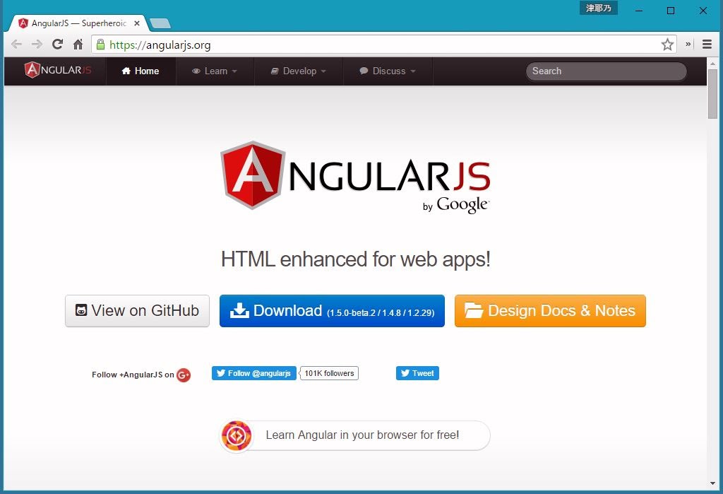 このAngularJSは、以下のサイトにて公開されています。ただし、ここからライブラリをダウンロードなどする必要はありません。そんなことしなくてもAngularJSは使えますからご心配なく。