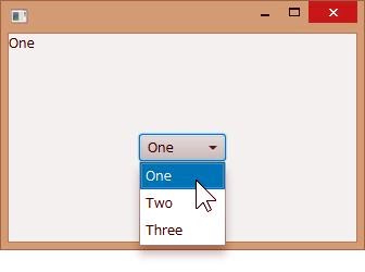 では、下のリスト欄に簡単なサンプルを挙げておきましょう。ComboBoxから項目を選ぶと、それをLabelに表示します。ComboBoxもsetOnActionでアクションイベントの処理を設定できるため、これを利用して処理をしています。