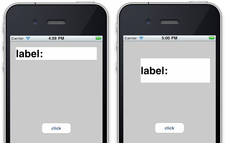 下に、コンポーネントの表示エリアを操作する簡単なサンプルをあげておきます。UILabelとUIButtonが配置されている状態で、ボタンをクリックすると、表示されているULabelの表示エリアが少しずつ変化していきます。