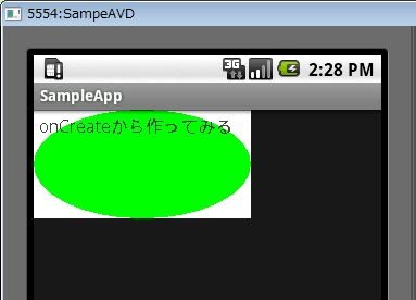 もちろん、作成したウィジェット・クラスは、そのままJavaのクラス内から利用することもできます。先ほどのSampleAppで、onCreateメソッドを書き換えて、直接インスタンスを表示させてみましょう。