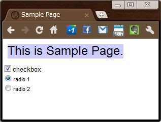 下に、コンポーネントの組み込み例をあげておきます。チェックボックス1つ、ラジオボタン2つを表示する例です。