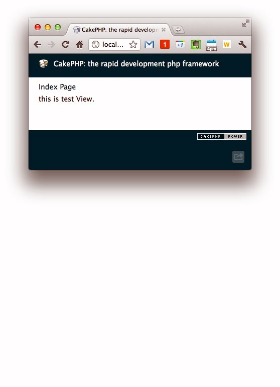 では、autoLayoutをOFFにしないで表示したらどうなるのでしょうか。下のリスト欄のようにファイルの内容を修正してアクセスしてみてください。多分、驚くことでしょう。CakePHPのサイトと同じような雰囲気のページが現れます。