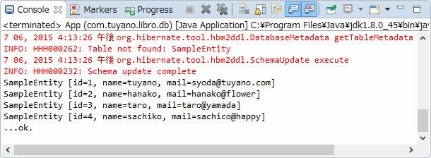 SampleEntity [id=2, name=hanako, mail=hanako@flower]