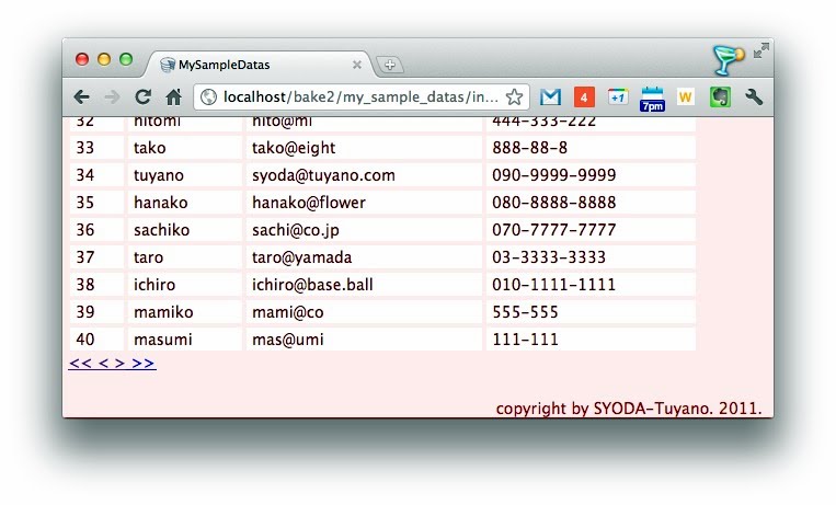 ページ移動のリンクも、やはり$this->Paginatorからメソッドを呼び出すだけで作成することができます。今回利用したメソッドは以下のようなものです。