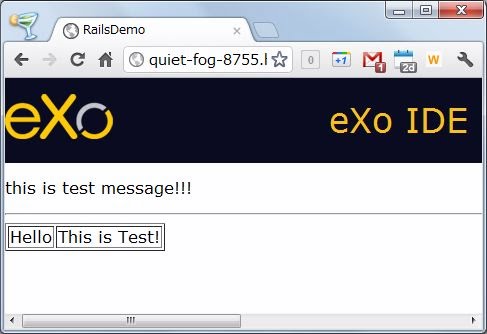 create_table "helos", :force => true do |t|このような内容を記述してからマイグレーションしてテーブルを作成してみてください。shema.rbは、データベースの構造をダンプすると生成されるファイルです。これを手作業で作りマイグレーションすることでeXo IDEからHerokuにテーブルを生成させることができました。ただし、eXo IDEも日々バージョンアップしているようですので、そのうち普通にマイグレーションしてデプロイすればOKになるかも知れません。