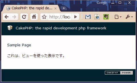 $this->set("title_text","Sample Page");こんな処理が書かれていることがわかります。これが、ビューに渡す変数を設定している部分なのです。ビューに何かの値を渡したい場合、コントローラー側で以下のように実行をしてやります。$this->set( 変数名 , 値 );これで、ビューのテンプレートでは第1引数の変数が用意されるようになります。