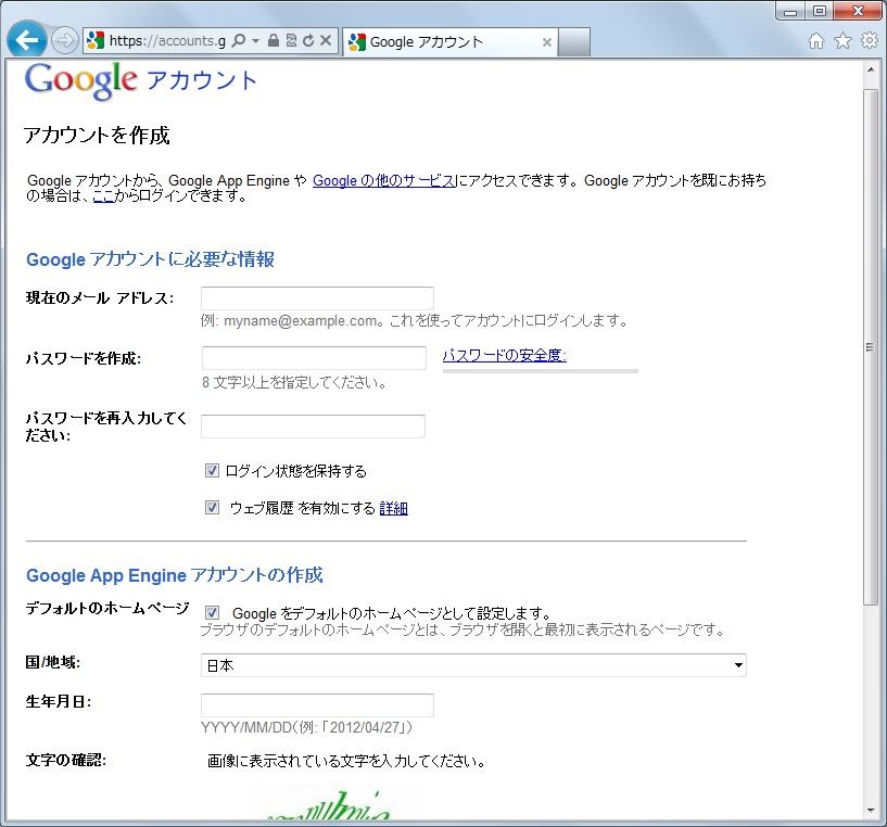 ※下図は、GoogleアカウントとGAEアカウントの登録画面