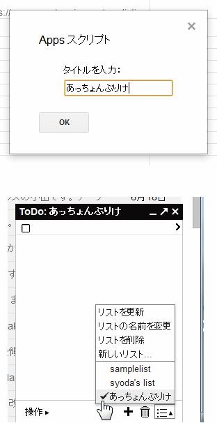 ――では、これらの簡単な利用例を挙げておきましょう。下のリストでは、入力ボックスからタイトルを入力すると、そのタイトルのタスクリストが作成されます。
