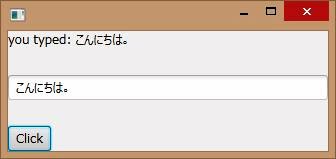 では、実際にButtonにEventHandlerを組み込んでイベント処理するサンプルを下に挙げておきましょう。これはボタンをクリックすると、フィールドに入力したテキストを取り出してメッセージをラベルに表示するサンプルです。setOnActionで、new EventHandler<ActionEvent>()を設定しているのがわかるでしょう。