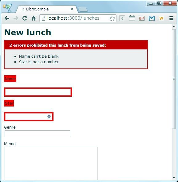:presence => 真偽値これは、カラの値を禁止するものです。:presenceの値は真偽値となり、trueを指定すると、必ず何らかの値が入力されなければならなくなります。
