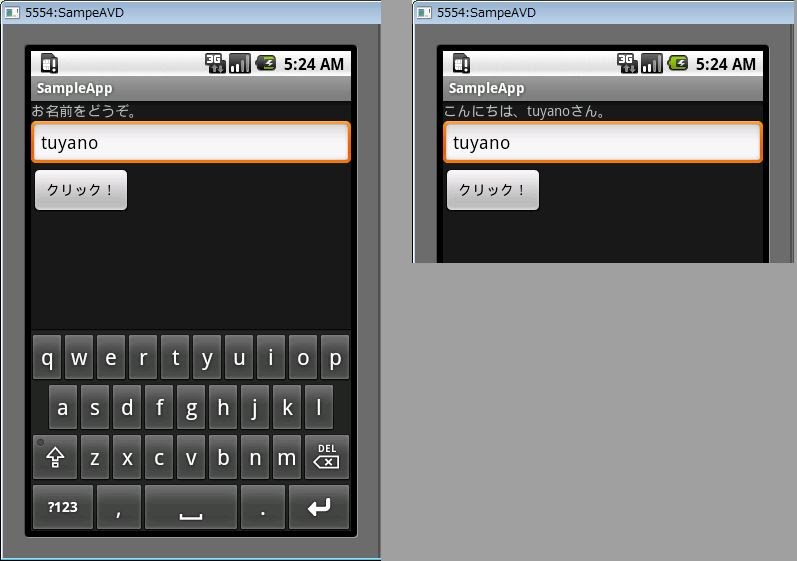 text.setText("こんにちは、" + s + "さん。");