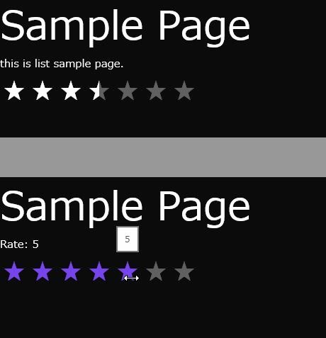 <div data-win-control="WinJS.UI.Rating"></div>これで表示されるのは★が5つ並んだ状態のものです。表示に関する設定などを行うには、data-win-options属性を用意してやります。この属性は、既に何度も登場していますが、オプション設定を連想配列の形でまとめたものを値に指定します。主なオプションとしては以下のようなものがあります。