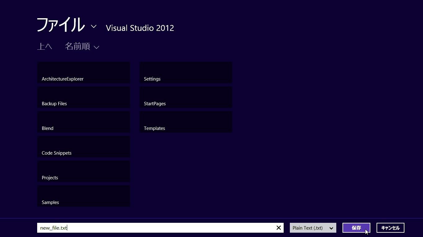 var 変数 = new Windows.Storage.Pickers.FileSavePicker();まず、オブジェクトを作成します。これはnewを使って作るだけです。引数などは不要です。