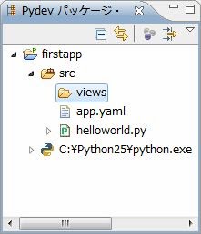 では、実際にWebページのテンプレートを作ってみましょう。今回も、前回サンプルに作成した「firstapp」プロジェクトをベースに説明を行います。まずは、テンプレートをまとめて保管する場所として、プロジェクトの「src」フォルダの中に、「views」というフォルダを作成してください。<ファイル><新規>メニューから<フォルダー>を選び、作成する場所とフォルダ名を入力すれば作ることができます。