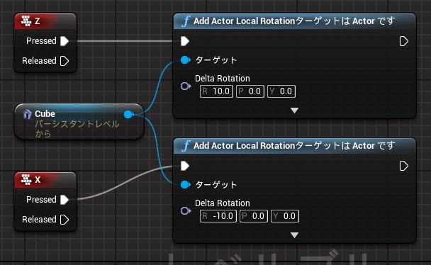 「Z」の「Pressed」→1つ目の「Add Actor Local Rotation」