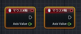「マウスX軸」は、マウスの横方向の動きに関するイベントノードです。「マウスY軸」は、マウスの縦方向のイベントノードです。いずれもマウスが移動すると発生します。