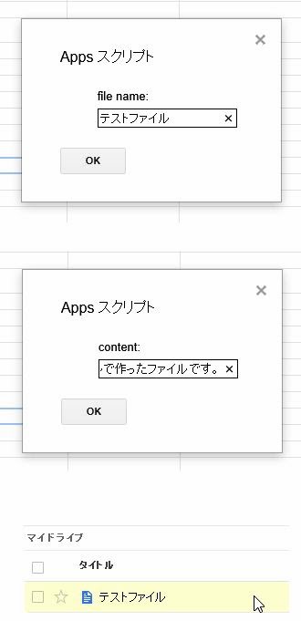 変数 = DriveApp.createFile( 名前 );ファイルを新たに作成することも可能です。これは「createFile」で、作成するファイルの名前を引数に指定して呼び出します。オプションとして、ファイルに保管するコンテンツを第2引数に、またファイルの種類を示すMimeタイプの文字列を第3引数に指定することができます。返値は、生成されたファイルを示すFileオブジェクトになります。