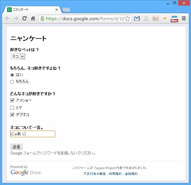 《質問オブジェクト》 .setChoiceValues( [String配列] );チェックボックス、ラジオボタン、リストといったものは、いくつかの項目を表示します。これらの項目を設定するのがsetChoiceValuesです。引数には、表示する項目のテキストを配列にまとめたものを指定します。
