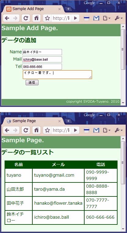では、基本的な仕組みがわかったら、別のアクションも作ってみましょう。今度は、データを追加する「add」アクションを考えてみます。