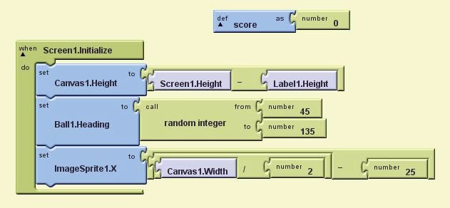 [set Canvas1.Height to] [ [Screen1.Height] - [Label1.Height] ]Canvas1の高さを設定しますが、今回はLabelも配置してますので、Screen1の高さからLabel1の高さを引いた幅に設定をします。