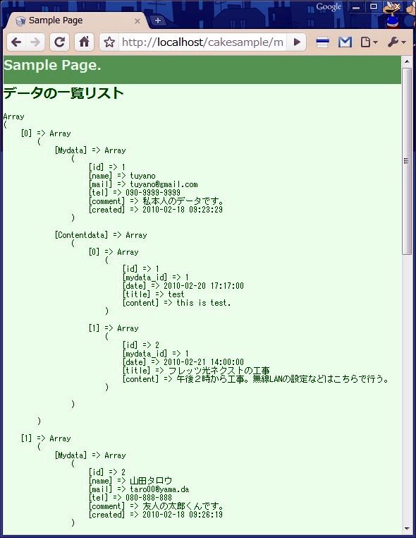 public $hasMany = "Contentdata"; // ★これ!