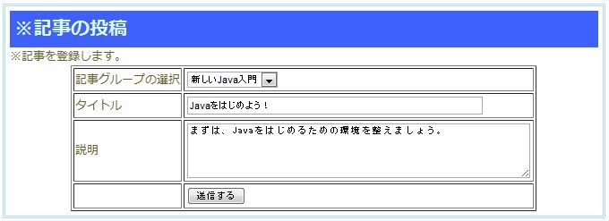 グループを作成すると、続いて記事を作成するフォームが現れます。ここで、記事のタイトルと説明を記入して送信すれば、記事が作成されます。