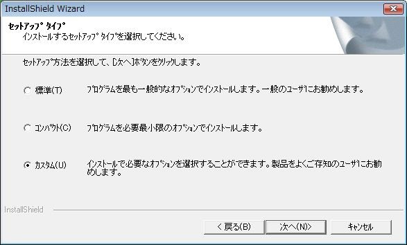 5.セットアップタイプになります。これは、インストールの方式を選びます。通常は「標準」でかまいませんが、Eclipseを使っている人は「カスタム」を選んでプラグインのインストールを行います。ここでは「カスタム」を選んで説明しましょう。