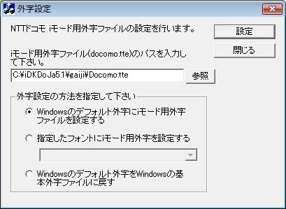 10.これでインストール完了です。が、インストーラを終了すると、またも「外字設定」というウインドウが現れます。これはiモードの外字を設定するためのもので、そのまま「設定」ボタンを押し、ウインドウを閉じればいいでしょう。