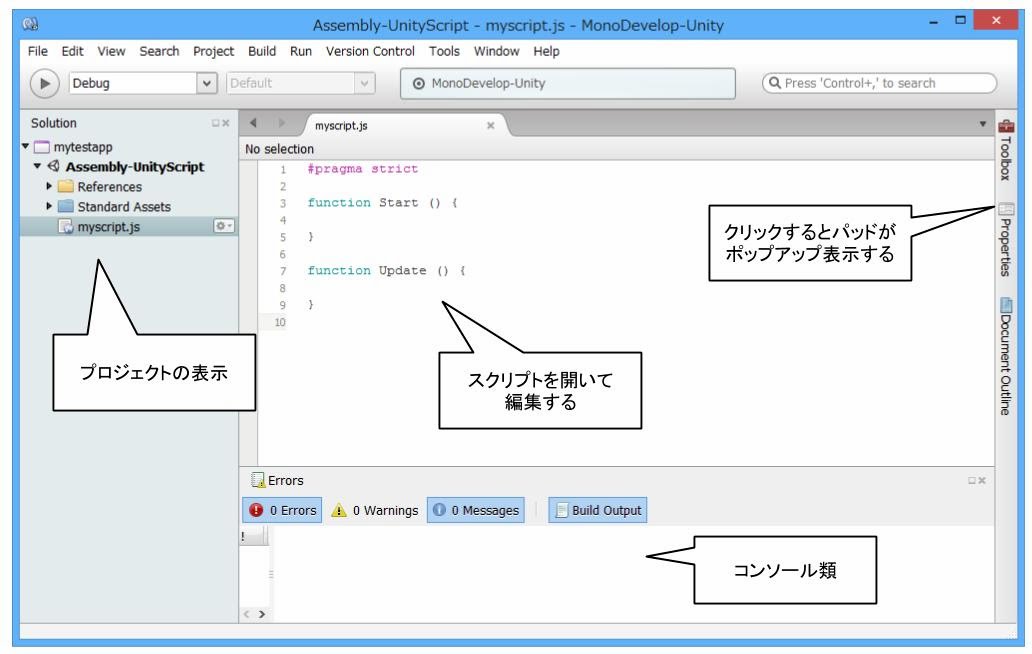 ――以上、いろいろ用意されてはいますが、UnityでJavaScriptを使って開発する場合、プロジェクトとエディタ以外はほとんど使いません。この2つだけ使えれば当座はOK、と考えましょう。
