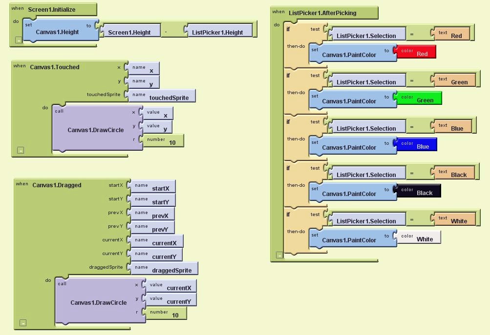 「set Canvas1.PaintColor to」「color Black」