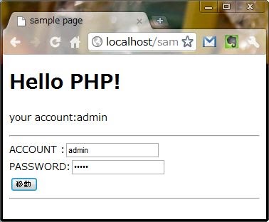 $account = $_POST['account'];セッション関係の処理は、たったこれだけです。 $_SESSIONに保管すればすべて保存されます。他に説明の要がないほど簡単ですね。あと、もう1つ触れておくとすれば、現在のアカウントを表示しているボディ内のスクリプト部分でしょう。ここでは、