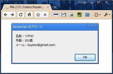 result += '年齢:' + MyData.age + '歳\n';