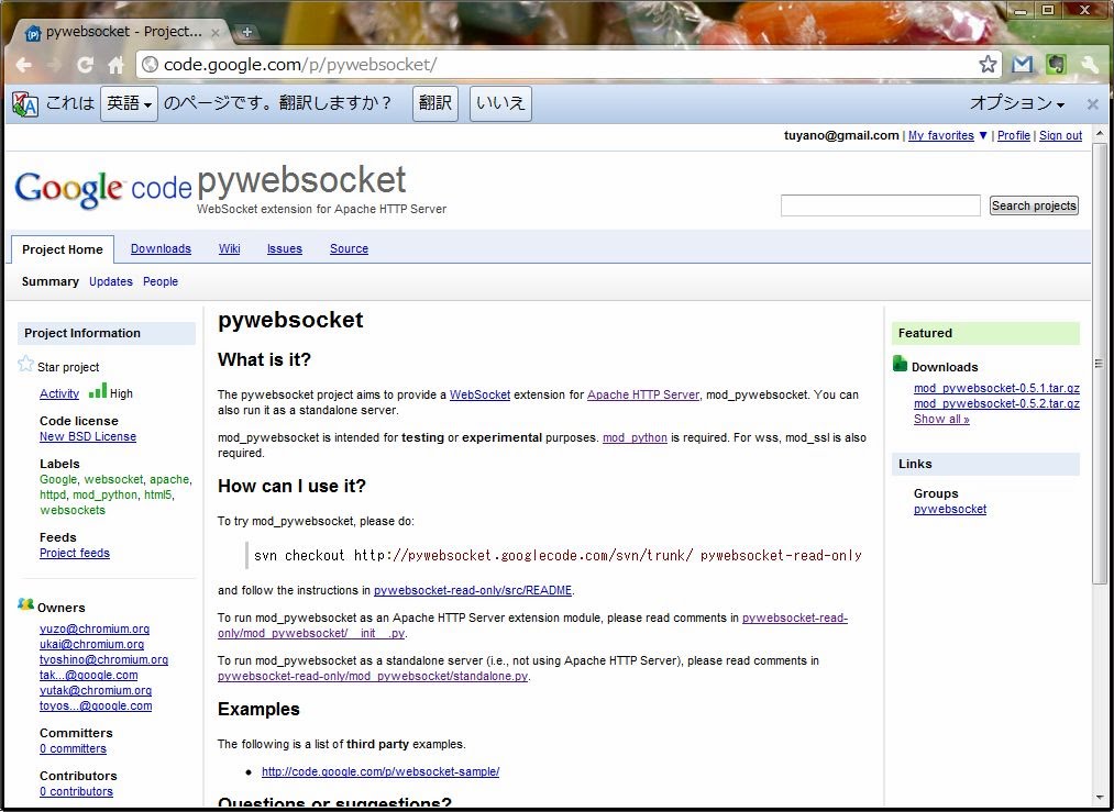 pywebsocket」というものを使ってみることにします。