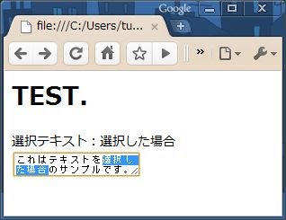 div.innerHTML = "選択テキスト:" + str;