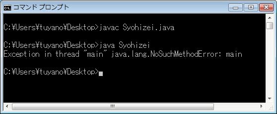 Syohizei.classというファイルが作られているはずです。これがクラスのプログラムが保存されているファイル(クラスファイル)になります。これを実行するには