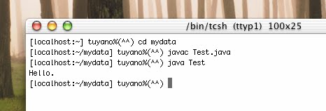 では、できあがったJavaのプログラムを実行してみましょう。以下の手順で行います。