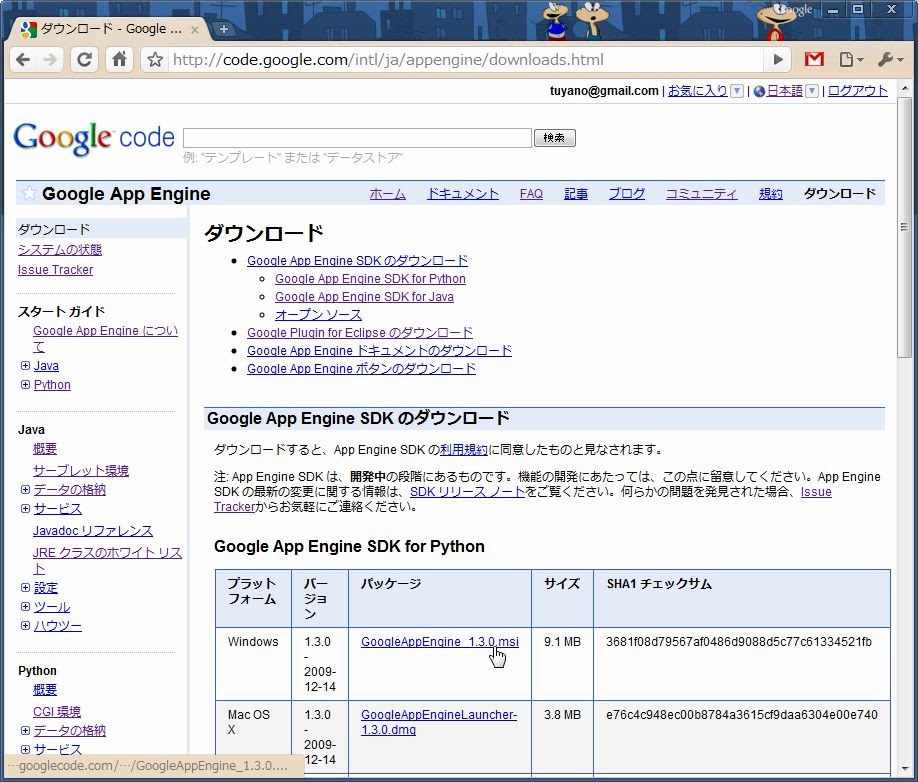 http://code.google.com/intl/ja/appengine/downloads.htmlここで、