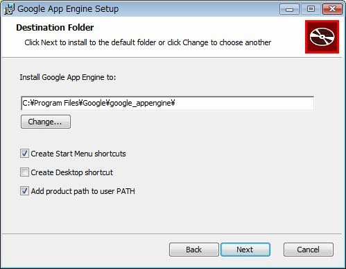 唯一注意したいのは、「Destination Folder」という設定画面です。これはインストールする場所と、作成するショートカット、環境変数PATHへのパスの追加などを行うものです。ショートカットなどは不要であればOFFにしてかまいませんが、環境変数PATHへの値の追加は必ず行うようにしましょう。