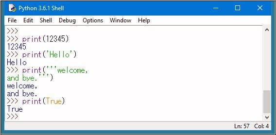 実際に、これらの値を使った例を挙げておきましょう。下のリストをIDLEから1行ずつ実行してみて下さい。ちょっとわかりにくいのはトリプルクォートのテキストですね。それ以外は、そう難しいものでもないでしょう。