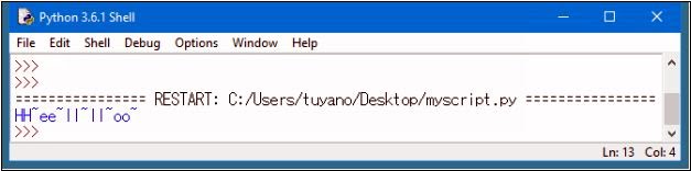 HH~ee~ll~ll~oo~」とテキストが書き出されます。テキスト内の文字を扱うのにリストが使える――このことは覚えておくとけっこう重宝しますよ。
