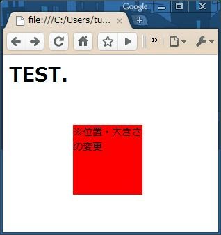 では、実際にこれらを使って位置と大きさを操作したサンプルを下のリストにあげておきましょう。ページをロードした際、initial関数を実行して、ターゲットとなる<div>タグの位置と大きさを設定します。