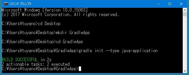 GradleApp」という名前で用意しましょう。以下のようにコマンドを実行して下さい。